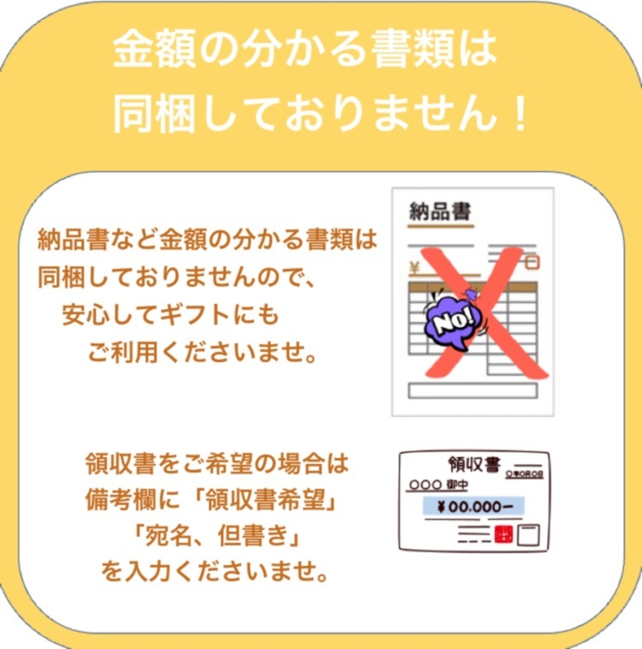 ●商品がお花である特性上、ギフト利用にも考慮してお荷物には領収書など金額の分かるような書類は一切お入れしておりません。