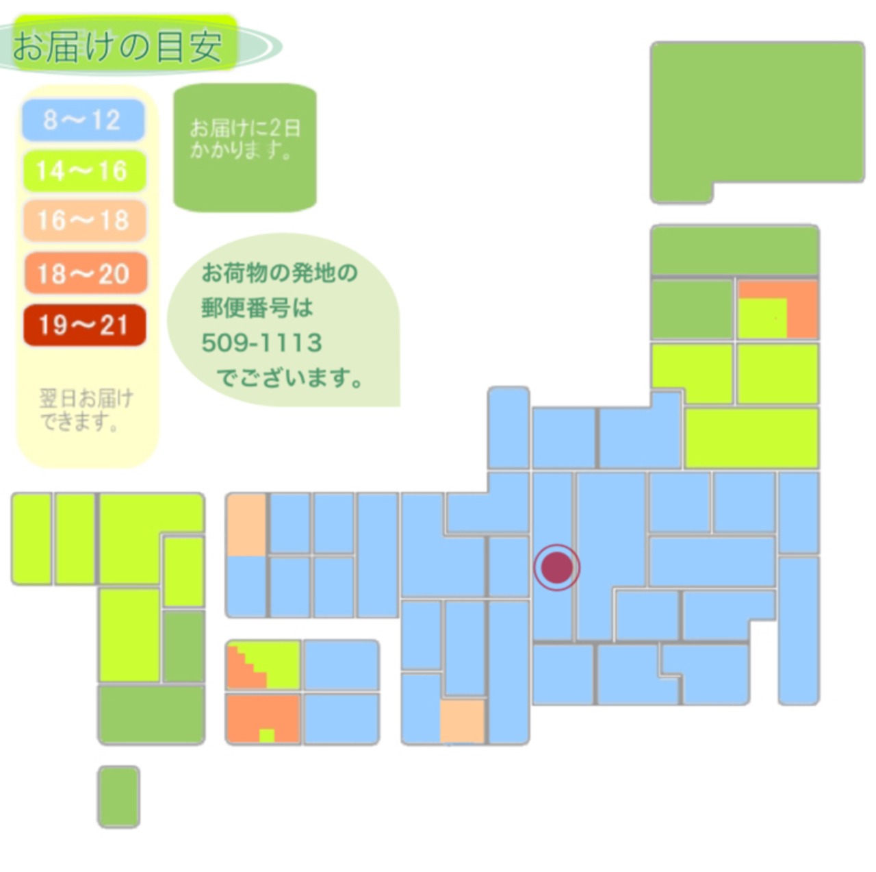 ※お届けに間に合いますように発送の手配をさせて頂きますが、気象状況、道路状況によって遅延が発生する場合がございますので、予めご留意くださいませ。