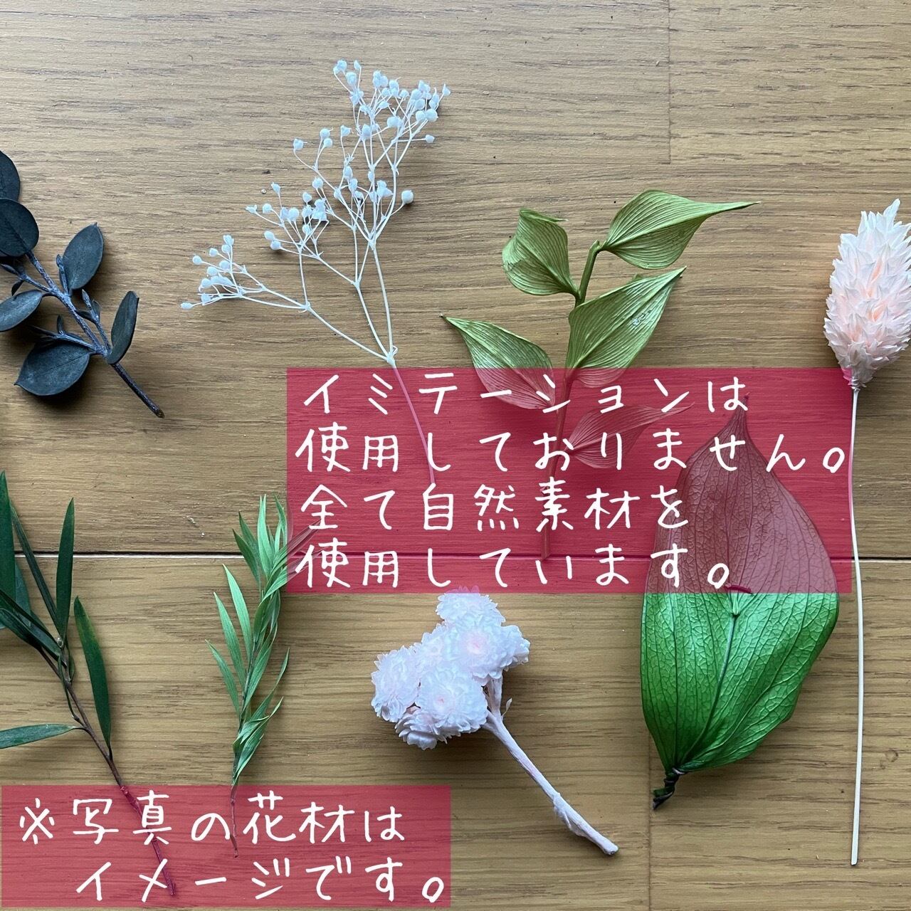 当店では自然素材にこだわり、造花やイミテーションなどは使用しておりません。