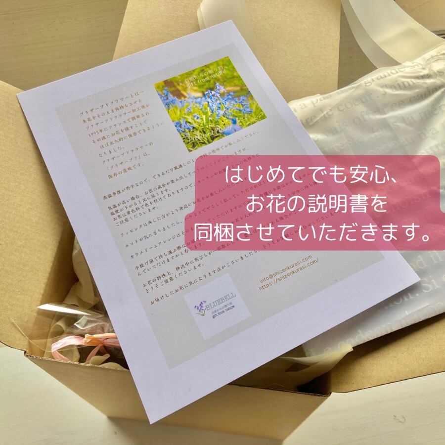 お届け時にはプリザーブドフラワーの説明書も一緒にお届けしております。