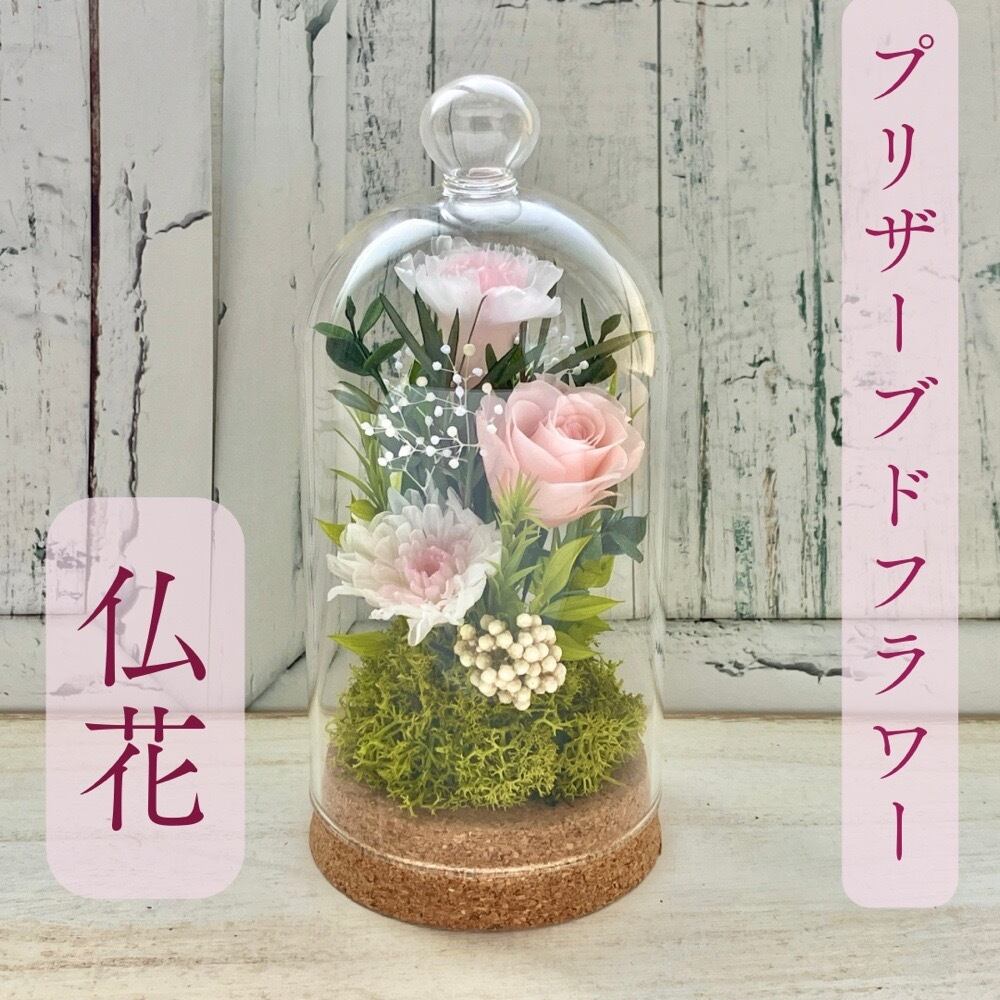プリザーブドフラワー 仏花 ガラスドーム お供え お悔やみ 仏壇用 供養 ペットの仏花●コルクドームM ktn